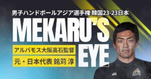 クウェートで開かれている第22回AHF男子アジア選手権は2026年1月23日(日本時間24日)、上位8チームによるメインラウンドの第2戦があり、予選ラウンドD組2位の日本(彗星JAPAN)は、C組1位のクウェートを完全アウェーのなか、28-27(前半15-14)で振り切った。日本はメインラウンドで通算1勝1分けとし、準決勝進出と世界選手権(1月、ドイツ)への出場権獲得に前進した。この試合のポイントを元日本代表で、リーグH男子のアルバモス大阪高石監督を務める銘苅淳さん(40)が振り返った。